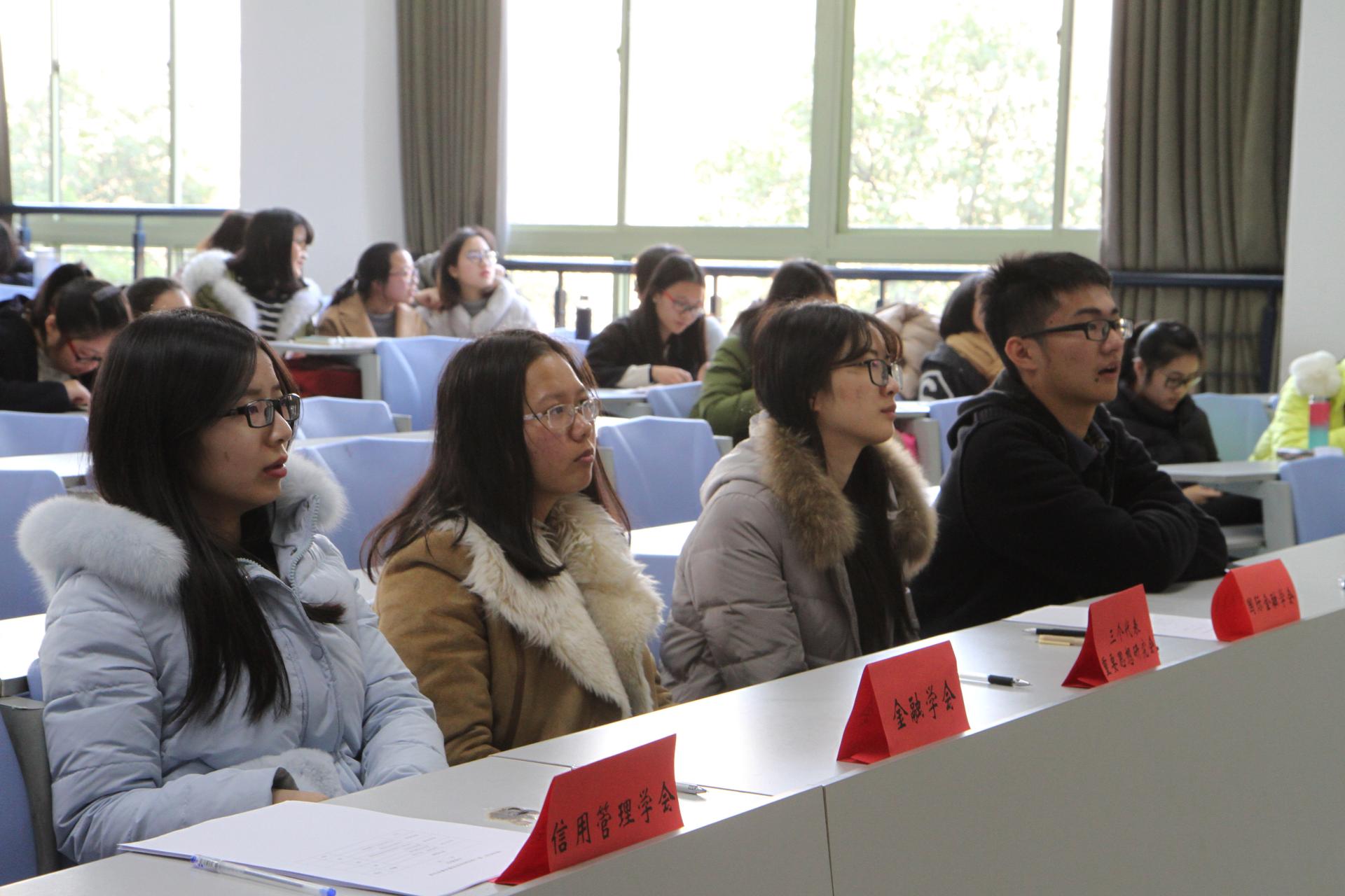 比赛伊始,主持人介绍了本次大赛的目的以及出席本次比赛的嘉宾和评委,分别是金融学会会长王宁宁,三个代表重要思想研究会代表,国际金融学会代表,公司金融学会代表,保险学会代表,本次决赛共有十二名选手参加。