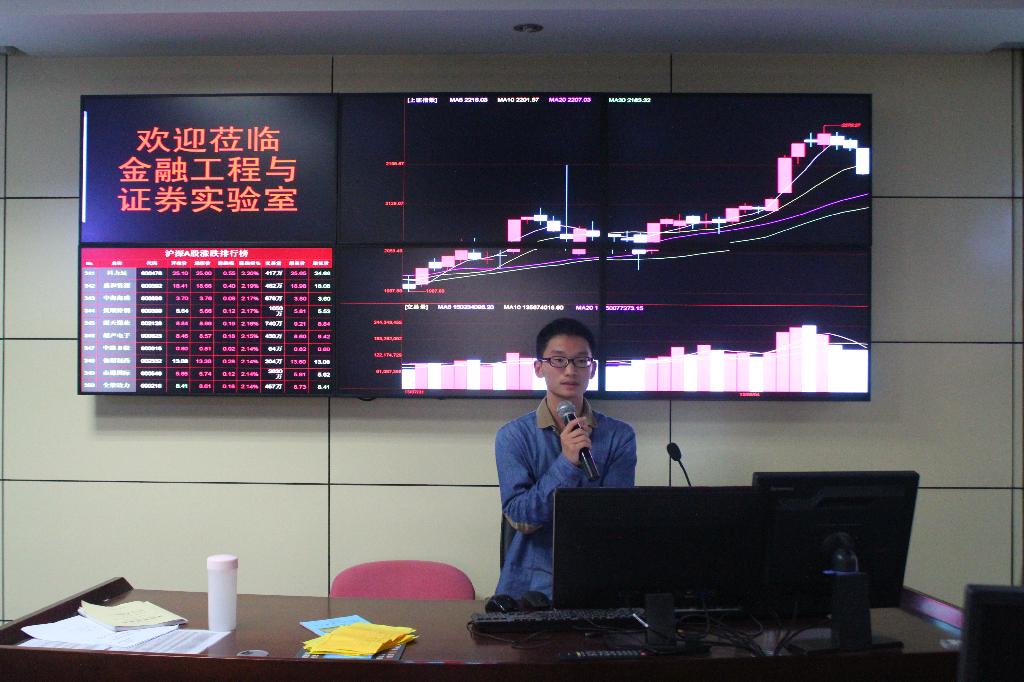 10月17日下午1点30分,金融学会本学年第二次学术讲座——股市沙龙在金融与证券实验室E310举行。本次讲座由金融学会学术委员会委员长胡杰飞担任主讲嘉宾,介绍证券知识并与大家一起分享他的投资心得。
