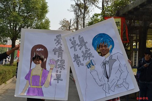 保险学会在文化长廊针对单身男女举办了“单身贵族爱情保单”活动。