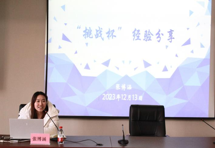 “挑战杯”全国大学生系列科技学术竞赛分享会,财政税务学院张博涵老师从自身参赛经验出发展开分享。
