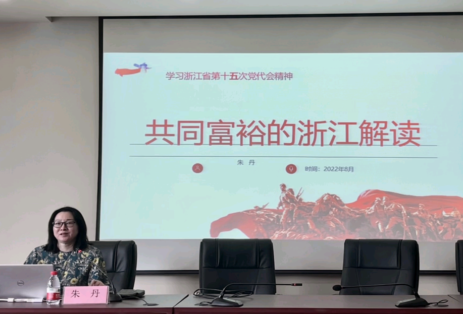 朱丹书记以《共同富裕的浙江解读》为题,引用习近平总书记提出的“现在已经到了扎实推动共同富裕的历史阶段”,通过对“两个先行”的阐述,进而引出浙江建设共同富裕示范区的推进情况。她从“为什么是浙江”“浙江实现共同富裕的路径”“浙江共同富裕的成果初显”“何时实现”四个方面展开分析,讲述浙江浓烈的改革意识、强力的战略支持、全方位的发展进步。她强调“社会主义是干出来的,幸福是奋斗出来的”,激励大学生党员一起为浙江的共同富裕添砖加瓦。