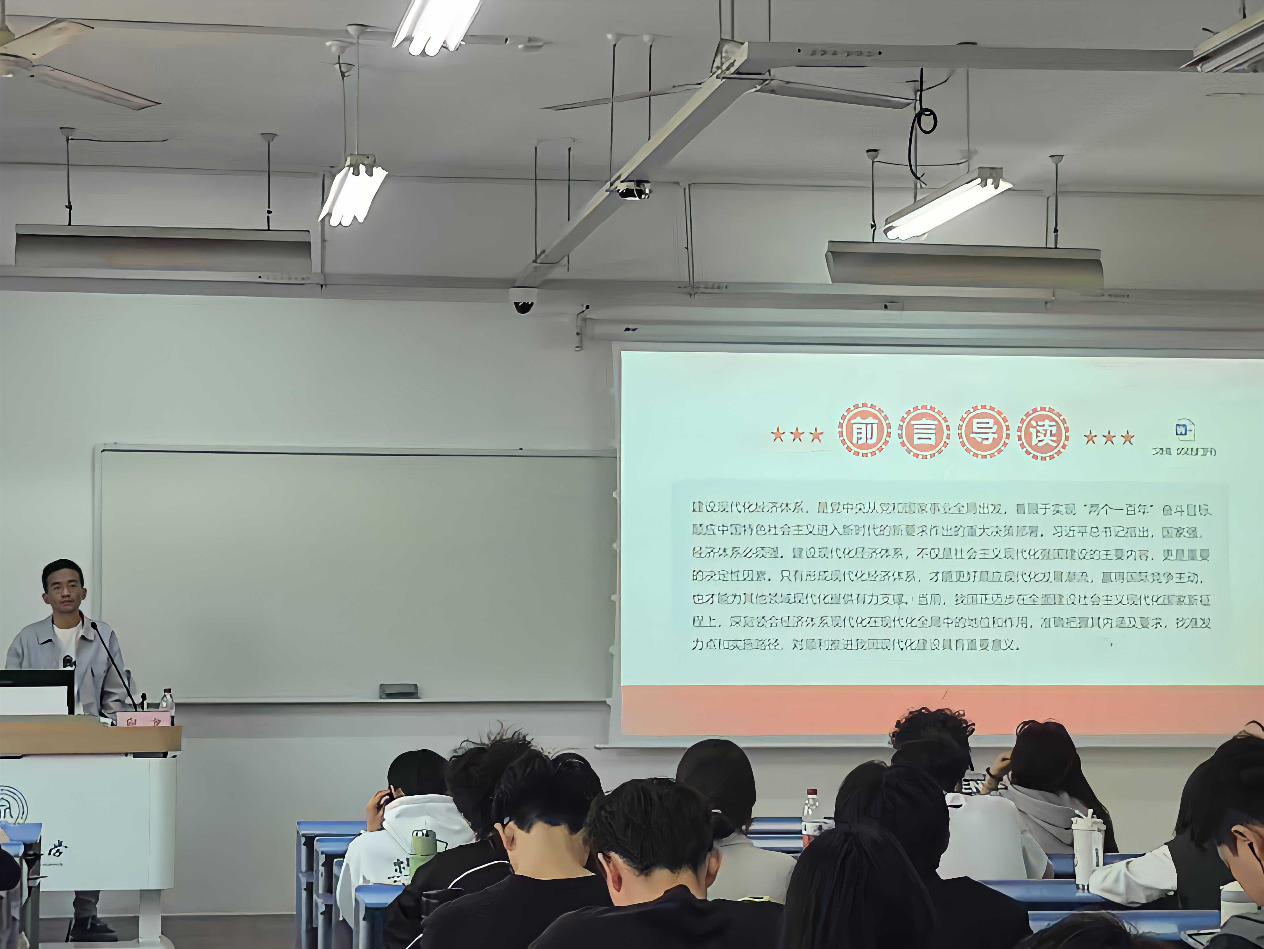 向龙围绕《现代化经济体系建设》这一主题,重点解读了“扎实推进新型工业化信息化城镇化农业现代化”的战略部署。通过详实的数据分析和生动的案例阐释,向老师深入剖析了“四化同步”发展的内在逻辑和实践路径。通过学习,学员们对构建现代化经济体系的重大意义有了更为深刻且透彻的认识。学员们清晰地领悟到,经济发展在国家战略全局中占据着关键且不可替代的核心地位,从而进一步强化了学员身为新时代青年应有的使命感与责任感,激励着他们积极主动地投身其中,以实际行动服务国家发展大局,勇担时代赋予的重任。