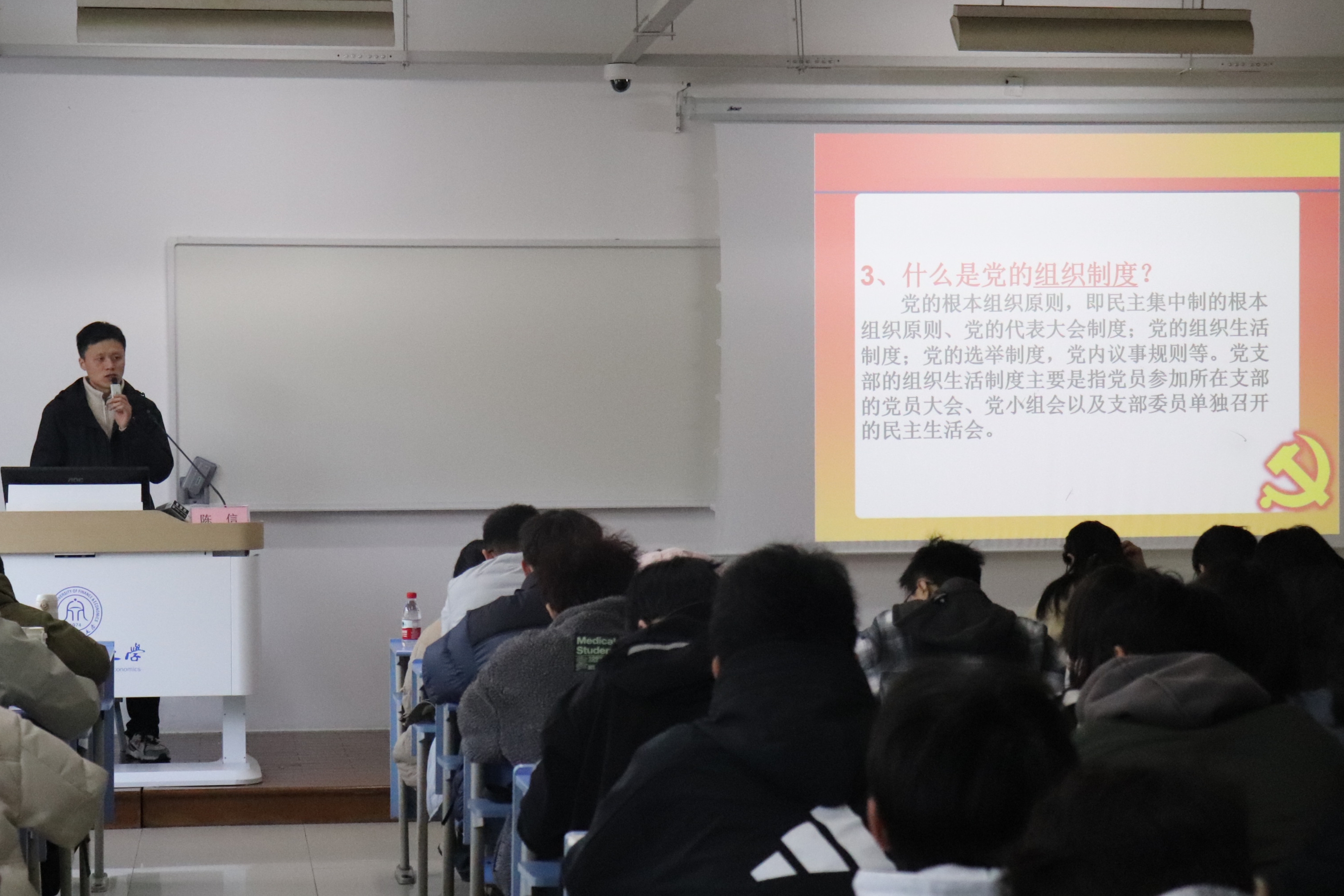 陈信围绕《党的组织制度与党内民主建设》这一主题,系统阐述了民主集中制的核心要义、历史沿革及实践形式,详细讲解了推进党内民主建设的重要环节。通过深入浅出地讲解,学员们深刻理解了民主集中制的科学内涵与制度优势,充分认识到党内民主对于激发党组织生机活力的关键作用。陈老师勉励全体学员要切实做到学思用贯通,将学习成果转化为实际行动,在党内民主实践中担当作为,共同推进党组织建设高质量发展。