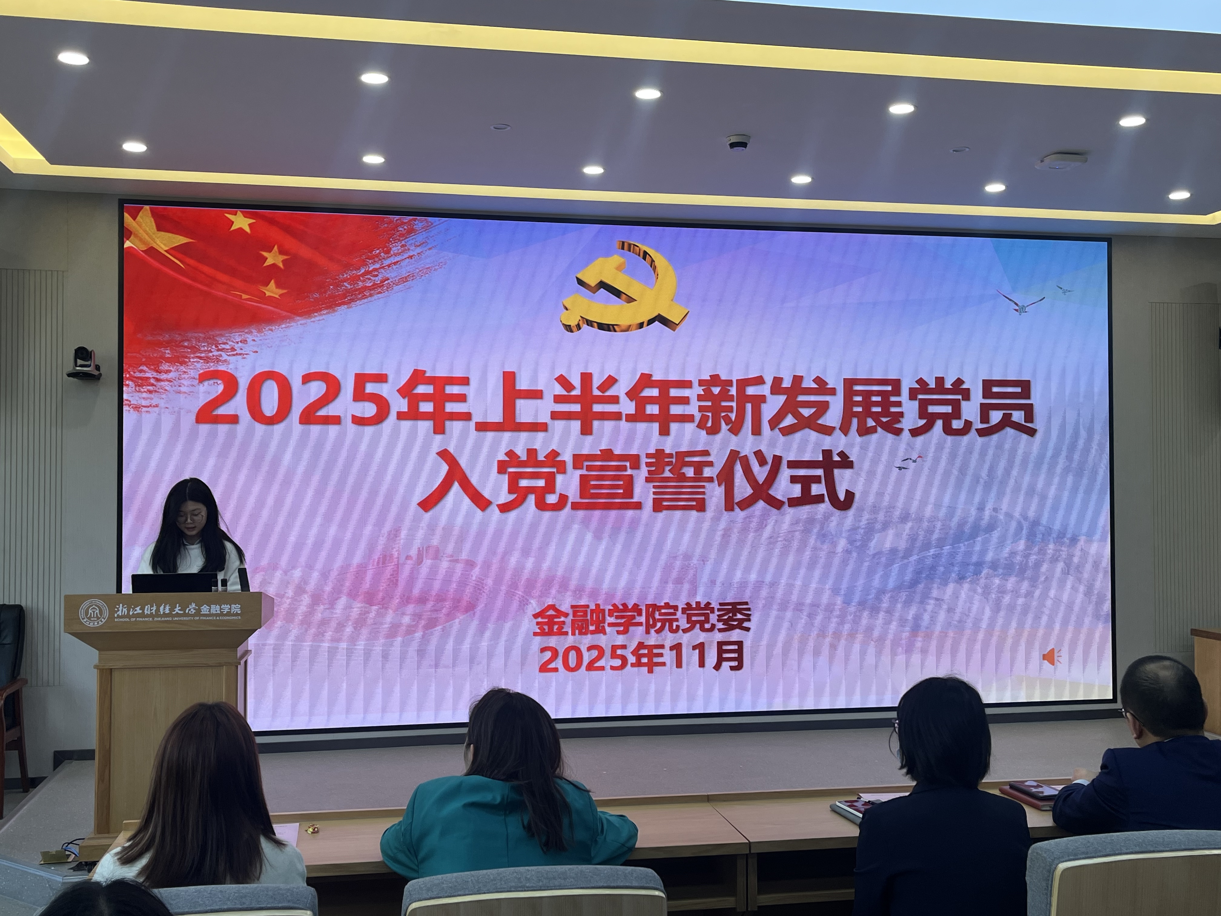党委在学院楼202国际报告厅举行2025年上半年新发展党员入党宣誓仪式。学院党委书记朱旭明、党委副书记陈思佳,各学生党支部书记、党建指导老师、老党员代表以及全体新发展党员参加了仪式。仪式由专职组织员翟丽媛主持。