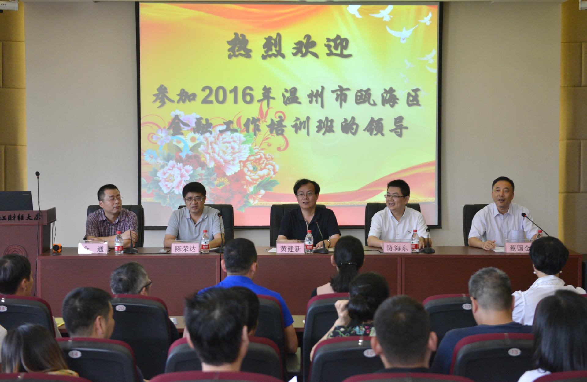 9月26日下午,2016年温州市瓯海区金融工作培训班在SF漫画 楼二楼学术报告厅隆重举行开班仪式。开班仪式由蔡国金书记主持,黄建新副校长、陈荣达院长、朴哲范副院长、王聪聪副院长、瓯海区金融办陈海东主任出席本次会议,瓯海区有关部门及镇街分管经济领导...