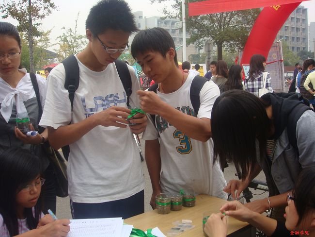 10月26日、27日中午,为迎接财院35岁生日,院学生会生活部在西大门举办了“绿丝带——自栽鲜花,献礼校庆”活动。在活动现场,只要填写一份领取花种登记表,就能拿到一个简易的手工小花盆,这都是生活部的干事们用运动会后收集到的空矿泉水瓶剪成的。填上...